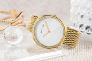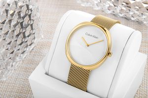 PERFEKCYJNA HARMONIA SZCZEGÓŁÓW. Delikatne wskazówki i tarcza, która miękko odbija światło – wszystko razem tworzy kompozycję, od której trudno oderwać wzrok. Wysokiej jakości materiały, dopracowane z zegarmistrzowską precyzją detale i perfekcyjnie skomponowana kolorystyka – zegarek Calvin Klein nosi się jak biżuterię, a każdy rzut oka na nadgarstek staje się estetycznym przeżyciem. Całość dopełniają: logo na tarczy, zapięciu bransolety oraz CK na koronce zegarka.