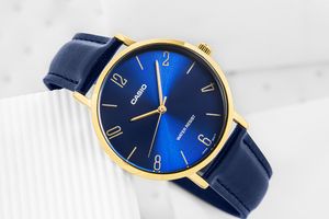 Zegarek Damski CASIO LTP-VT01GL-2BUDF + BOX. Jeśli chcesz nosić na nadgarstku coś więcej niż tylko czas, ten model jest stworzony dla Ciebie. Smukła tarcza otulona złotym blaskiem i subtelne detale dodają mu szlachetności, a miękki skórzany pasek otula nadgarstek niczym delikatna biżuteria. To zegarek, który nie tylko odmierza minuty, ale i podkreśla Twój styl – elegancki, ponadczasowy, pełen klasy. Idealny dla kobiet, które cenią subtelną elegancję i chcą błyszczeć bez zbędnego przepychu.