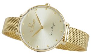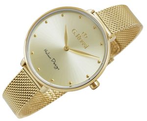 ODROBINA LUKSUSOWEGO CHARAKTERU. Złote wskazówki i logo G.Rossi z koroną nadają całości szlachetności, a bransoleta typu mesh o szerokości 12 mm oplata nadgarstek jak elegancka, złota wstęga, łącząc wygodę z ponadczasowym stylem. Ten zegarek jest wyrazem wyrafinowanego minimalizmu – doskonały dla kobiet, które szukają czegoś wyjątkowego, a jednocześnie subtelnego. G.Rossi 11890B3-4D1 to nie tylko czasomierz, ale i biżuteria, dodająca blasku każdej chwili.
