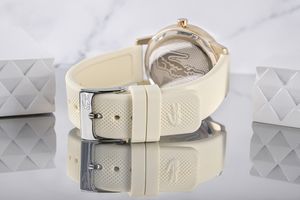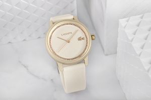GO GLAMOUR! Złocona tarcza, lśniąca niczym ciepłe promienie zachodzącego słońca, dodaje zegarkowi blasku, który nie jest nachalny, ale doskonale wyważony – tak jak perfumy, które zostawiają za sobą delikatną woń luksusu. Cyrkonie, które otaczają tarczę, przypominają rozgwieżdżone niebo – ich subtelne migotanie sprawia, że każda sekunda jest pełna blasku, ale nigdy przesadnego. To wyrafinowany dodatek, który podkreśla klasę bez zbędnego przepychu. Pasek w ciepłym odcieniu kości słoniowej, wykonany z gładkiego, matowego materiału, jest jak delikatny aksamit na skórze – komfortowy, a jednocześnie pełen klasy. Idealnie balansuje pomiędzy klasycznym urokiem a nowoczesnym designem, dodając całości miękkości i subtelności, która kontrastuje z wyrazistą, złotą tarczą. Każdy szczegół, od subtelnie połyskującego napisu LACOSTE po złotego krokodyla na godzinie trzeciej, to niczym biżuteria dodana do codziennej stylizacji, która nie tylko zdobi, ale staje się integralną częścią osobistego stylu.