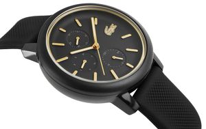 Ten damski zegarek Lacoste to kwintesencja elegancji z nowoczesnym, minimalistycznym twistem, idealny dla kobiety ceniącej subtelne, ale wyraziste dodatki. Jego głęboka, matowa czerń stanowi doskonałe tło dla wyrafinowanych, złotych akcentów, które nadają całości luksusowego blasku bez nadmiernej ekstrawagancji.