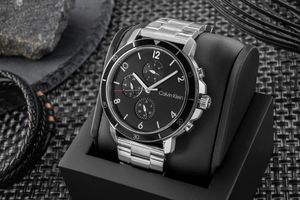 Model CALVIN KLEIN z czarną tarczą to czasomierz z charakterem – bez zbędnych ozdobników, za to z maksymalną precyzją. Głęboka czerń matowego cyferblatu działa jak ekran skupienia – zero chaosu, sama esencja funkcji. Trzy subtarcze rozmieszczone z chirurgiczną dokładnością oferują nie tylko datę i dzień tygodnia, ale też 24-godzinny tryb – jakby zegarek chciał powiedzieć: „Mam wszystko pod kontrolą, ty też możesz”. Czarny bezel z precyzyjnie naniesioną skalą dodaje zegarkowi sportowego zacięcia i podkreśla jego zdecydowany, męski charakter. Czerwone zakończenie sekundnika to niewielki detal, który robi duże wrażenie – wprowadza odrobinę drapieżności do stonowanej tarczy. To jak precyzyjny akcent, który podkreśla charakter zegarka i nadaje mu energii w stylowy sposób.