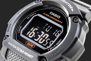 PRZYDATNE FUNKCJE TEGO MODELU. Zegarek Casio W-219H wyposażony jest w szereg praktycznych funkcji, które sprawiają, że doskonale sprawdza się w codziennym użytkowaniu. Posiada podświetlenie LED ułatwiające odczyt w ciemności, stoper z dokładnością do 1/100 sekundy z możliwością pomiaru czasu upływającego, podziału oraz wyników pierwszego i drugiego miejsca. Ma również alarm codzienny, sygnał godzinowy, automatyczny kalendarz oraz możliwość wyboru formatu 12- lub 24-godzinnego. Na wyświetlaczu prezentowane są godzina, minuty, sekundy, dzień tygodnia i data. Zegarek charakteryzuje się wodoszczelnością do 50 metrów oraz długą żywotnością baterii. Wszystkie te funkcje czynią go niezawodnym i praktycznym towarzyszem na co dzień.