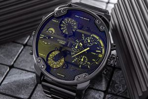 DIESEL MR DADDY – POTĘGA, która przyciąga spojrzenia. Wyrazista, industrialna estetyka sprawia, że ten model wygląda jak wyjęty prosto z przyszłości, gdzie mężczyźni rządzą w zgiełku wielkich miast i w trudnych warunkach. Kolorystyka? Odbijająca się na tarczy, z niebiesko-złotym gradientem, który zmienia się w zależności od kąta padania światła – to jak zmieniający się kameleon. Ten efekt sprawia, że zegarek przyciąga wzrok jak magnes. W tej palecie kolorów jest coś nieuchwytnego, coś, co sprawia, że czujesz się niepowtarzalnie za każdym razem, gdy go zakładasz. Dodatkowo żółte indeksy, wskazówki i sekundnik są jak promienie energii – wyraźne, śmiałe, i zawsze gotowe do akcji. Ta intensywna, żywa kolorystyka to kolejny ukłon w stronę mężczyzn, którzy chcą być zauważeni. Cztery niezależne tarcze, surowy metal, masywne pokrętła – to zegarek dla tych, którzy uwielbiają dominować. Diesel Mr Daddy DZ7460 nie prosi o uwagę – on ją wymusza.