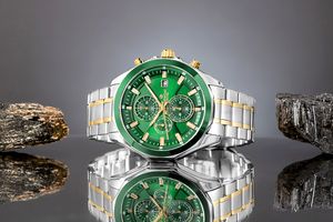 DODATKOWE MOŻLIWOŚCI TWOJEGO ZEGARKA. Chronografy w tym modelu pozwalają na śledzenie czasu z niesamowitą dokładnością. Stoper odmierza czas co do sekundy, co sprawia, że ten zegarek jest idealnym towarzyszem zarówno podczas treningów, jak i w codziennym życiu, gdy liczy się precyzja. Możesz uruchomić stoper jednym przyciskiem i dokładnie kontrolować czas swoich działań – idealne dla mężczyzny, który ceni punktualność i perfekcję w każdym aspekcie. Możesz również mierzyć czas w różnych jednostkach, np. minut i sekund, co daje pełną kontrolę nad dłuższymi okresami czasu. Dodatkowo dzięki fluorescencyjnym wskazówkom możesz sprawdzić godzinę w każdej sytuacji – wystarczy jedno spojrzenie, by odczytać godzinę, czy jesteś w słabo oświetlonym pomieszczeniu, czy na nocnej eskapadzie. Ten model posiada również funkcję daty dni miesiąca.