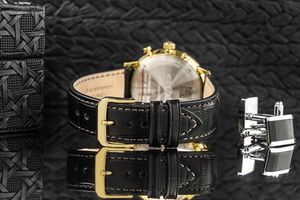 Wybierając zegarek Zeppelin, sięgasz po coś więcej niż czasomierz – to historia zamknięta w eleganckiej formie, precyzja w każdym detalu i ponadczasowy luksus, który będzie Ci towarzyszył przez lata. Model 7038-1 łączy luksusową złotą kopertę i srebrną tarczę z wyrazistymi czarnymi detalami, tworząc harmonię inspirowaną stylem retro. Jego funkcje, takie jak wskaźnik faz księżyca, dzień tygodnia i datownik, sprawiają, że zegarek jest nie tylko elegancki, ale także niezwykle praktyczny. Całość dopełnia czarny pasek z subtelnym brązowym przeszyciem podkreślający rzemieślniczy kunszt.