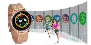 Kupując ten model smartwatcha G.Rossi, masz pewność wysokiej jakości. Wieloletnia tradycja marki G.Rossi sprawia, że zegarek zostanie twym przyjacielem. Wysoka jakość GWARANTOWANA. Producent zapewnia serwis gwarancyjny. Ten smartwatch możesz połączyć ze swoim Smartfonem. Kompatybilność Android 4.4 i nowszy, iOS 9.0 i nowszy. Damski SMARTWATCH G.Rossi SW015-4 Różowe złoto, bransoleta różowe złoto.