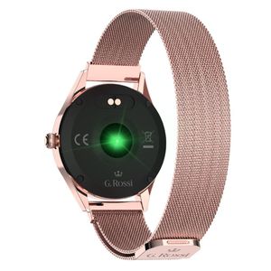 Kupując ten model smartwatcha G.Rossi, masz pewność wysokiej jakości. Wieloletnia tradycja marki G.Rossi sprawia, że zegarek zostanie twym przyjacielem. Wysoka jakość GWARANTOWANA. Producent zapewnia serwis gwarancyjny. Damski SMARTWATCH G.Rossi SW017-4 SMARTWATCH G.Rossi to przepiękna i stylowa propozycja, dla każdej kobiety z klasą. Jesteś na bieżąco z nowinkami, ale nie chcesz rezygnować z tradycyjnego wyglądu zegarka? Wybierz smartwatch od G.Rossi! Tu nowe technologie przeplatają się ze stylem i jakością! Sama zobacz - stalowa koperta, skórzany pasek i dotykowy ekran o wielkości 1.04" cala - to połączenie, które Cię zachwyci! Zegarek jest wyposażony w nowinki, które pomogą każdej kobiecie w lepszej organizacji czasu wolnego: 9 trybów sportowych, analiza snu i przypomnienia (o spotkaniu, o zażyciu leków, o piciu wody i o miesiączce). Dodatkowo na ekranie wyświetlają się powiadomienia push up z aplikacji, wiadomości sms oraz przychodzące połączenia. Od tej chwili jesteś na bieżąco ze wszystkim i wszystkimi! Do tego wszystkiego możesz zmienić wygląd wyświetlacza korzystając z 5 motywów: meduzy, motyla, złożonego motylka, kociaka czy bukietu kwiatów. Wszystkie motywy są kobiece i subtelne oraz znakomicie kontrastujące z ciemnym kolorem wyświetlacza. Każdy chce być zdrowy jak najdłużej, ten Smartwatch w tym pomaga, mierzy tętno i ciśnienie, rewelacyjne udogodnienie do kontrolowania stanu zdrowia. Ten smartwatch możesz połączyć ze swoim Smartfonem. Kompatybilność: system Android 5.0 i nowszy oraz iOS 9.0 i nowszy.
