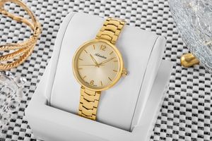 Zegarek Damski ADRIATICA Classic A3790.1151Q + BOX. ADRIATICA Classic A3790.1151Q to esencja kobiecego minimalizmu, ubranego w luksusowy blask. Całość utrzymana w ciepłym, złotym tonie, który subtelnie podkreśla każdą stylizację – od białej koszuli po wieczorową sukienkę. Tarcza zdobiona misternym, promienistym wzorem delikatnie odbija światło, tworząc efekt miękkiego lśnienia – niczym tafla złota. Smukłe wskazówki, eleganckie indeksy i delikatnie zaznaczone cyfry 6 i 12 – każdy detal zaprojektowany z myślą o kobiecie, która kocha klasę, ale nie potrzebuje przepychu. Bransoleta układa się na nadgarstku jak złoty łańcuszek – wygodnie, lekko, z naturalną gracją. W sercu tego modelu pracuje szwajcarski mechanizm kwarcowy, gwarantujący niezawodność i precyzję Swiss Made - wartości, które od dekad stanowią synonim najwyższej jakości. Każdy zegarek Adriatica to kwintesencja szwajcarskiej precyzji – każdy detal został starannie dopracowany, a wysokojakościowe materiały podkreślają luksusowy charakter czasomierza.