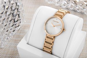 PERFEKCYJNA HARMONIA SZCZEGÓŁÓW. Delikatne wskazówki i tarcza, która miękko odbija światło – wszystko razem tworzy kompozycję, od której trudno oderwać wzrok. Wysokiej jakości materiały, dopracowane z zegarmistrzowską precyzją detale i perfekcyjnie skomponowana kolorystyka – zegarek Calvin Klein nosi się jak biżuterię, a każdy rzut oka na nadgarstek staje się estetycznym przeżyciem. Całość dopełniają: logo na tarczy, zapięciu bransolety oraz CK na koronce zegarka.