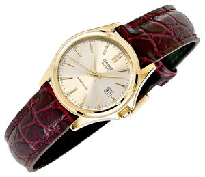 Zegarek Damski Casio LTP-1183Q-9ADF to zegarek, który łączy w sobie ponadczasową elegancję i praktyczność codziennego użytkowania – złota koperta o wyrazistej linii kontrastuje z złotą tarczą, na której czytelne indeksy i datownik na godzinie trzeciej gwarantują wygodę odczytu w każdej sytuacji, a miękki skórzany pasek dodaje klasy i komfortu noszenia. Mineralne szkło chroni cyferblat przed uszkodzeniami, a wodoodporność 30 m sprawia, że zegarek bez problemu zniesie codzienne wyzwania. To doskonały wybór dla kobiety, która ceni solidność marki Casio, niezawodną precyzję kwarcowego mechanizmu i elegancki wygląd, który pasuje zarówno do pracy, jak i spotkań po godzinach.