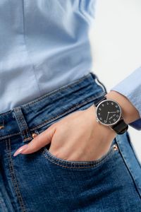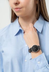 KOMFORT NOSZENIA SKÓRZANEGO PASKA PAUL LORENS. Wykonany z najwyższej jakości, naturalnej skóry pasek urzeka już od pierwszego dotyku – swoją miękkością, subtelnością i starannym wykończeniem. To nie tylko stylowy dodatek, ale codzienny towarzysz, który z łatwością dopasowuje się do kobiecego nadgarstka, zapewniając komfort przez cały dzień. Dzięki swoim naturalnym właściwościom pasek "oddycha", sprawiając, że noszenie zegarka Paul Lorens staje się prawdziwą przyjemnością. Całość wieńczy eleganckie zapięcie ozdobione logo Paul Lorens – delikatny akcent luksusu, który podkreśla unikalny styl tej niezwykłej ozdoby.
