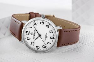Zegarki marki Perfect to esencja ponadczasowego stylu, w którym elegancja spotyka się z wyrafinowaną harmonią. To modele, które nie tylko odmierzają czas, ale stają się wyrazem osobowości i klasy, oferując coś wyjątkowego zarówno dla kobiet, jak i mężczyzn. Design zegarków marki Perfect harmonia pomiędzy klasyką a nowoczesnym designem – dla tych, którzy szukają czegoś więcej niż tylko sposobu na odmierzanie czasu.Ten zegarek to harmonijne połączenie elegancji i przytulności. Srebrna koperta otacza białą tarczę, która emanuje świeżością i nowoczesnym stylem. Czarne indeksy oraz wskazówki kontrastują z jasnym tłem, zapewniając wyrazistość i doskonałą czytelność. Czarni sekundnik dodaje dynamiki i charakteru, płynnie poruszając się w rytmie czasu. Brązowy pasek, wykończony brązową nitką, wprowadza ciepło i naturalność, idealnie harmonizując z całością. To idealny wybór dla kobiety, która ceni sobie styl i wygodę, dodając odrobinę luksusu do każdej stylizacji. Z tym zegarkiem każda chwila staje się wyjątkowa.