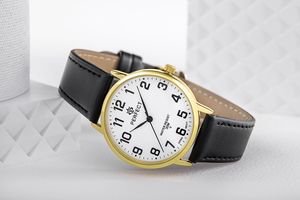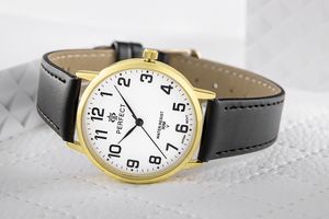 Zegarki marki Perfect to esencja ponadczasowego stylu, w którym elegancja spotyka się z wyrafinowaną harmonią. To modele, które nie tylko odmierzają czas, ale stają się wyrazem osobowości i klasy, oferując coś wyjątkowego zarówno dla kobiet, jak i mężczyzn. Design zegarków marki Perfect harmonia pomiędzy klasyką a nowoczesnym designem – dla tych, którzy szukają czegoś więcej niż tylko sposobu na odmierzanie czasu. Ten zegarek to perfekcyjne połączenie luksusu i klasycznej elegancji. Złota koperta subtelnie otacza białą tarczę, emanując blaskiem i stylem. Czarne indeksy oraz wskazówki wyraźnie kontrastują z jasnym tłem, co zapewnia doskonałą czytelność. Czarni sekundnik płynnie porusza się, dodając dynamiki całej kompozycji. Czarny pasek, starannie wykończony czarną nitką, wprowadza nowoczesny akcent, idealnie współgrając z całością. To idealny wybór dla kobiety, która pragnie podkreślić swoją indywidualność i wyrafinowanie. Z tym zegarkiem każda chwila staje się wyjątkowa, a jego elegancja sprawia, że czas nabiera nowego znaczenia.