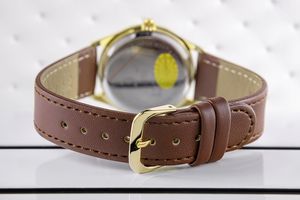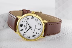 Zegarki marki Perfect to esencja ponadczasowego stylu, w którym elegancja spotyka się z wyrafinowaną harmonią. To modele, które nie tylko odmierzają czas, ale stają się wyrazem osobowości i klasy, oferując coś wyjątkowego zarówno dla kobiet, jak i mężczyzn. Design zegarków marki Perfect harmonia pomiędzy klasyką a nowoczesnym designem – dla tych, którzy szukają czegoś więcej niż tylko sposobu na odmierzanie czasu. Ten zegarek to idealne połączenie luksusu z ciepłem i naturalnością. Złota koperta subtelnie otula białą tarczę, dodając elegancji i blasku. Czarne indeksy oraz wskazówki tworzą efektowny kontrast, zapewniając doskonałą czytelność. Czarni sekundnik dodaje dynamiki, płynnie poruszając się w rytmie czasu. Brązowy pasek, starannie wykończony brązową nitką, wprowadza nutę przytulności i stylu, doskonale harmonizując z resztą zegarka. To idealny wybór dla kobiety, która pragnie podkreślić swoją indywidualność i wyrafinowanie w codziennych stylizacjach. Z tym zegarkiem każda chwila nabiera wyjątkowego blasku.