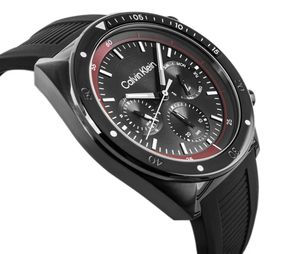 Model CALVIN KLEIN CK Flex to manifest miejskiego stylu z nutą adrenaliny. Kontrast czarnej tarczy i burgundowego pierścienia buduje napięcie wizualne, jakby zegarek miał zaraz wystartować. Na tarczy znajdziesz trzy subtarcze: 24-godzinny tryb, datownik oraz wskaźnik dnia tygodnia – wszystko rozmieszczone tak, by zapewnić intuicyjną czytelność i zachować balans. Solidny bezel i wyraziste przyciski wzmacniają sportowy, a zarazem wyrafinowany klimat zegarka. Gumowy pasek z żłobieniami dopełnia całości, oferując komfort noszenia - sportowy, praktyczny, ale wciąż elegancki. CALVIN KLEIN CK Flex to zegarek, który świetnie odnajdzie się zarówno przy biurku, w trakcie dynamicznych spotkań, jak i wieczorem – podczas spokojnego czasu dla siebie.