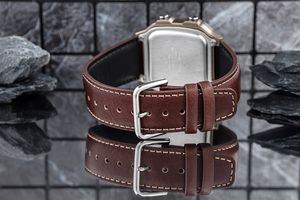 To męski zegarek cyfrowy z kultowej serii Casio Collection, który w wyjątkowy sposób łączy wojskowy styl i retro design z nowoczesną technologią. Solidna koperta z tworzywa sztucznego, szkiełko haselitowe oraz wytrzymały pasek skórzany tworzą lekką, a zarazem niezwykle wygodną konstrukcję, idealną na co dzień i w podróży. Ciemnozielona kolorystyka z czarnymi akcentami i prostokątna tarcza LCD z mapą świata nadają zegarkowi charakterystyczny, przygodowy wygląd inspirowany stylem vintage. Model wyposażono w funkcję czasu światowego (World Time), pięć alarmów dziennych, stoper 1/100 sekundy, timer odliczania, automatyczny kalendarz oraz podświetlenie LED z regulacją czasu świecenia. Zasilany baterią o żywotności do 10 lat, oferuje również wodoszczelność 100 metrów, dzięki czemu doskonale sprawdzi się zarówno w miejskiej dżungli, jak i w terenie. Casio to zegarek dla mężczyzn, którzy cenią niezawodność, funkcjonalność i ponadczasowy design z nutą przygody.