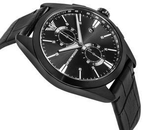 ARMANI CLAUDIO - WPRAWIA W RUCH CZAS, ZATRZYMUJE UWAGĘ. Zegarek Emporio Armani Claudio AR11483 to idealne połączenie elegancji, nowoczesności i funkcjonalności. Zaprojektowany z myślą o mężczyźnie, który ceni styl i precyzję, przyciąga uwagę swoim wyrafinowanym wyglądem i dopracowanymi detalami. Koperta o średnicy 42 mm wykonana ze stali szlachetnej w kolorze czarnym nadaje mu charakteru i męskiej siły, a czarna tarcza o promienistym wykończeniu typu sunray subtelnie zmienia odcień w zależności od kąta padania światła, tworząc efekt głębi i elegancji. Na tarczy umieszczono subtarcze chronografu oraz datownik, które nie tylko dodają zegarkowi sportowego akcentu, ale także zwiększają jego funkcjonalność. Wskazówki pokryte warstwą luminescencyjną zapewniają czytelność w każdych warunkach. Sercem zegarka jest niezawodny mechanizm kwarcowy chronograf, który gwarantuje precyzyjne odmierzanie czasu bez potrzeby nakręcania. Całość chroni trwałe szkło mineralne o podwyższonej odporności na zarysowania, a wodoszczelność na poziomie 5 ATM pozwala na bezpieczne użytkowanie zegarka na co dzień – podczas mycia rąk, w deszczu czy lekkiego kontaktu z wodą. Pasek skórzany idealnie dopełnia projekt, zapewniając wygodę i nowoczesny wygląd i ułatwia zakładanie. Emporio Armani Claudio zegarek dla mężczyzny, który pragnie podkreślić swój styl, pewność siebie i zamiłowanie do klasy premium w każdym detalu.