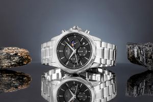 DODATKOWE MOŻLIWOŚCI TWOJEGO ZEGARKA. Chronografy w tym modelu pozwalają na śledzenie czasu z niesamowitą dokładnością. Stoper odmierza czas co do sekundy, co sprawia, że ten zegarek jest idealnym towarzyszem zarówno podczas treningów, jak i w codziennym życiu, gdy liczy się precyzja. Możesz uruchomić stoper jednym przyciskiem i dokładnie kontrolować czas swoich działań – idealne dla mężczyzny, który ceni punktualność i perfekcję w każdym aspekcie. Możesz również mierzyć czas w różnych jednostkach, np. minut i sekund, co daje pełną kontrolę nad dłuższymi okresami czasu. Dodatkowo dzięki fluorescencyjnym wskazówkom możesz sprawdzić godzinę w każdej sytuacji – wystarczy jedno spojrzenie, by odczytać godzinę, czy jesteś w słabo oświetlonym pomieszczeniu, czy na nocnej eskapadzie. Ten model posiada również funkcję daty dni miesiąca.
