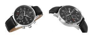 Tarcza: Analogowa z chronografami minut stopera, sekund stopera, czasu 24h oraz datownikiem dni miesiąca