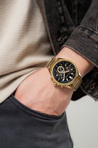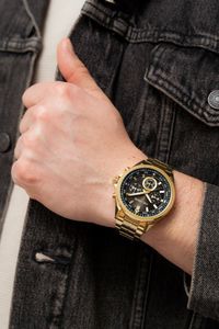 MOCNA TRWAŁA BRANSOLETA. Wykonana z najwyższej jakości stali nierdzewnej to połączenie niezłomnej trwałości i luksusowego wykończenia, które robi wrażenie od pierwszego spojrzenia. Jej mocna, solidna konstrukcja zapewnia niezawodność i pewność, że zegarek będzie leżeć perfekcyjnie, bez względu na to, jak wymagający będzie Twój dzień. Precyzyjnie wykonane zapięcie, opatrzone wytłoczonym logo, dopełnia ten mocny, męski charakter, dodając odrobinę elegancji i prestiżu. Wielostopniowy mechanizm zapięcia zapobiega przypadkowemu odpięciu zegarka.