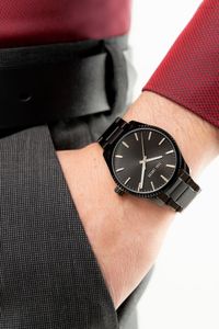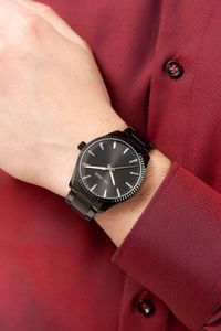MOCNA TRWAŁA BRANSOLETA. Wykonana z najwyższej jakości stali nierdzewnej to połączenie niezłomnej trwałości i luksusowego wykończenia, które robi wrażenie od pierwszego spojrzenia. Jej mocna, solidna konstrukcja zapewnia niezawodność i pewność, że zegarek będzie leżeć perfekcyjnie, bez względu na to, jak wymagający będzie Twój dzień. Precyzyjnie wykonane zapięcie, opatrzone wytłoczonym logo, dopełnia ten mocny, męski charakter, dodając odrobinę elegancji i prestiżu. Wielostopniowy mechanizm zapięcia zapobiega przypadkowemu odpięciu zegarka.
