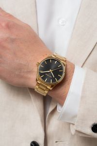 MOCNA TRWAŁA BRANSOLETA. Wykonana z najwyższej jakości stali nierdzewnej to połączenie niezłomnej trwałości i luksusowego wykończenia, które robi wrażenie od pierwszego spojrzenia. Jej mocna, solidna konstrukcja zapewnia niezawodność i pewność, że zegarek będzie leżeć perfekcyjnie, bez względu na to, jak wymagający będzie Twój dzień. Precyzyjnie wykonane zapięcie, opatrzone wytłoczonym logo, dopełnia ten mocny, męski charakter, dodając odrobinę elegancji i prestiżu. Wielostopniowy mechanizm zapięcia zapobiega przypadkowemu odpięciu zegarka.