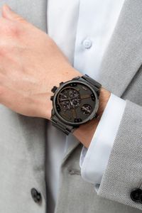 Zainwestuj męski zegarek Paul Lorens i odkryj, jak wyjątkowy detal potrafi odmienić Twój wizerunek. Mocny, potężny i zauważalny. Strukturalnie rozbudowana koperta tego modelu to kwintesencja siły i surowości – idealnie wpisuje się w męski, industrialny styl, który Paul Lorens doprowadził do perfekcji. Masywna koperta o średnicy 50 mm daje poczucie mocy, które każdy mężczyzna chce mieć na swoim nadgarstku. Srebrne śruby i industrialne elementy dekoracyjne nadają zegarkowi charakterystyczny, techniczny wygląd. Pomimo swojej wielkości, zegarek doskonale układa się na nadgarstku, zapewniając nie tylko wygodę, ale także pewność, że jest to model stworzony do działania w każdych warunkach. Dla mężczyzn, którzy nie boją się robić wrażenia.