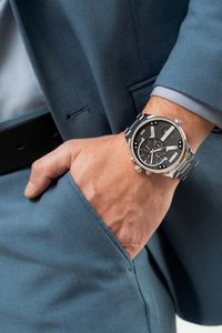 MOCNA TRWAŁA BRANSOLETA. Wykonana z najwyższej jakości stali nierdzewnej to połączenie niezłomnej trwałości i luksusowego wykończenia, które robi wrażenie od pierwszego spojrzenia. Jej mocna, solidna konstrukcja zapewnia niezawodność i pewność, że zegarek będzie leżeć perfekcyjnie, bez względu na to, jak wymagający będzie Twój dzień. Precyzyjnie wykonane zapięcie, opatrzone wytłoczonym logo, dopełnia ten mocny, męski charakter, dodając odrobinę elegancji i prestiżu. Wielostopniowy mechanizm zapięcia zapobiega przypadkowemu odpięciu zegarka.