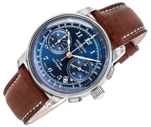Zegarek męski Zeppelin LZ 126 Los Angeles 7614-3 to wyjątkowy model łączący elegancję z funkcjonalnością. Inspiracją dla jego projektu była era majestatycznych sterowców, co nadaje mu niepowtarzalny charakter. Wyposażony został w precyzyjny mechanizm kwarcowy Miyota 6S21, który zapewnia niezawodność i dokładne odmierzanie czasu. Koperta ze stali szlachetnej o średnicy 42 mm i grubości 12 mm prezentuje się solidnie, a jednocześnie komfortowo układa się na nadgarstku. Granatowa tarcza z białymi wskazówkami pokrytymi warstwą Super-Luminova gwarantuje doskonałą czytelność w każdych warunkach. Zegarek posiada chronograf, datownik oraz tachymetr, co czyni go praktycznym towarzyszem na co dzień. Tarczę chroni wypukłe szkło mineralne K1, odporne na zarysowania. Całość uzupełnia klasyczny, brązowy pasek ze skóry naturalnej, nadający całości eleganckiego charakteru. Model jest wodoszczelny do 5 ATM i sprzedawany w oryginalnym pudełku BOX, dzięki czemu doskonale nadaje się również na prezent.